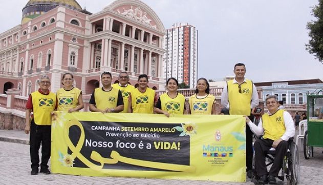 Como parte da programação da campanha “Setembro Amarelo” de prevenção ao suicídio, a Prefeitura de Manaus, por meio da Secretaria Municipal da Mulher, Assistência Social e Cidadania (Semasc), promoveu nesta quinta-feira, 22/9, um ato de valorização da vida. A ação, realizada no largo São Sebastião, no Centro, zona Sul, buscou sensibilizar a população acerca do papel da fé para a saúde mental, contando com a participação de representantes de diversas manifestações religiosas e Organizações da Sociedade Civil (OSCs) da cidade.
