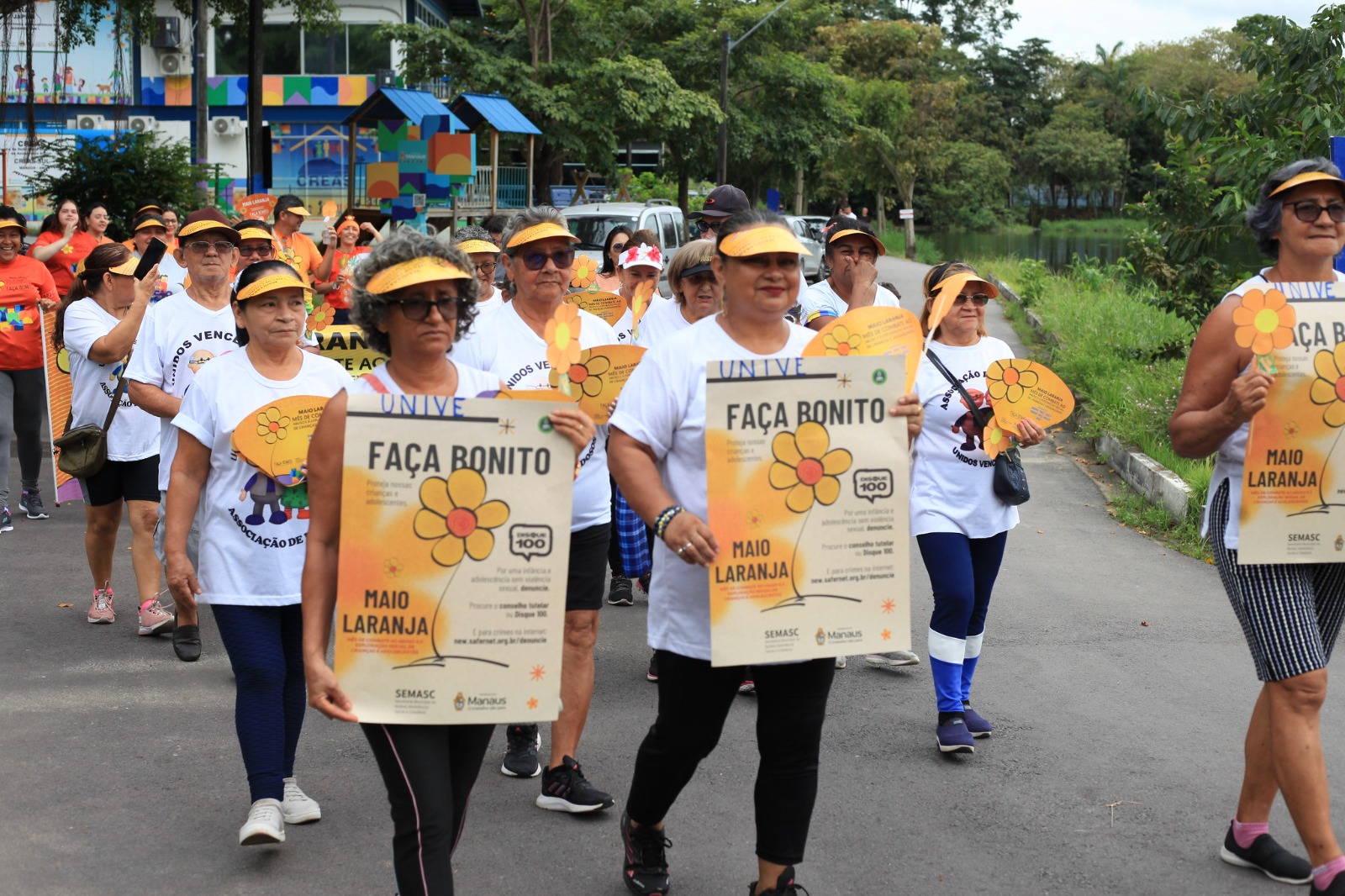 Dando continuidade à programação do “Maio Laranja”, a Prefeitura de Manaus, por meio da Secretaria Municipal da Mulher, Assistência Social e Cidadania (Semasc), realizou, nesta sexta-feira, 16/5, uma caminhada de sensibilização sobre o enfrentamento ao abuso e à exploração sexual de crianças e adolescentes. A ação foi organizada de forma conjunta pelo Centro de Referência de Assistência Social (Cras) Japiim e pelo Centro de Referência Especializado de Assistência Social (Creas) Sul.