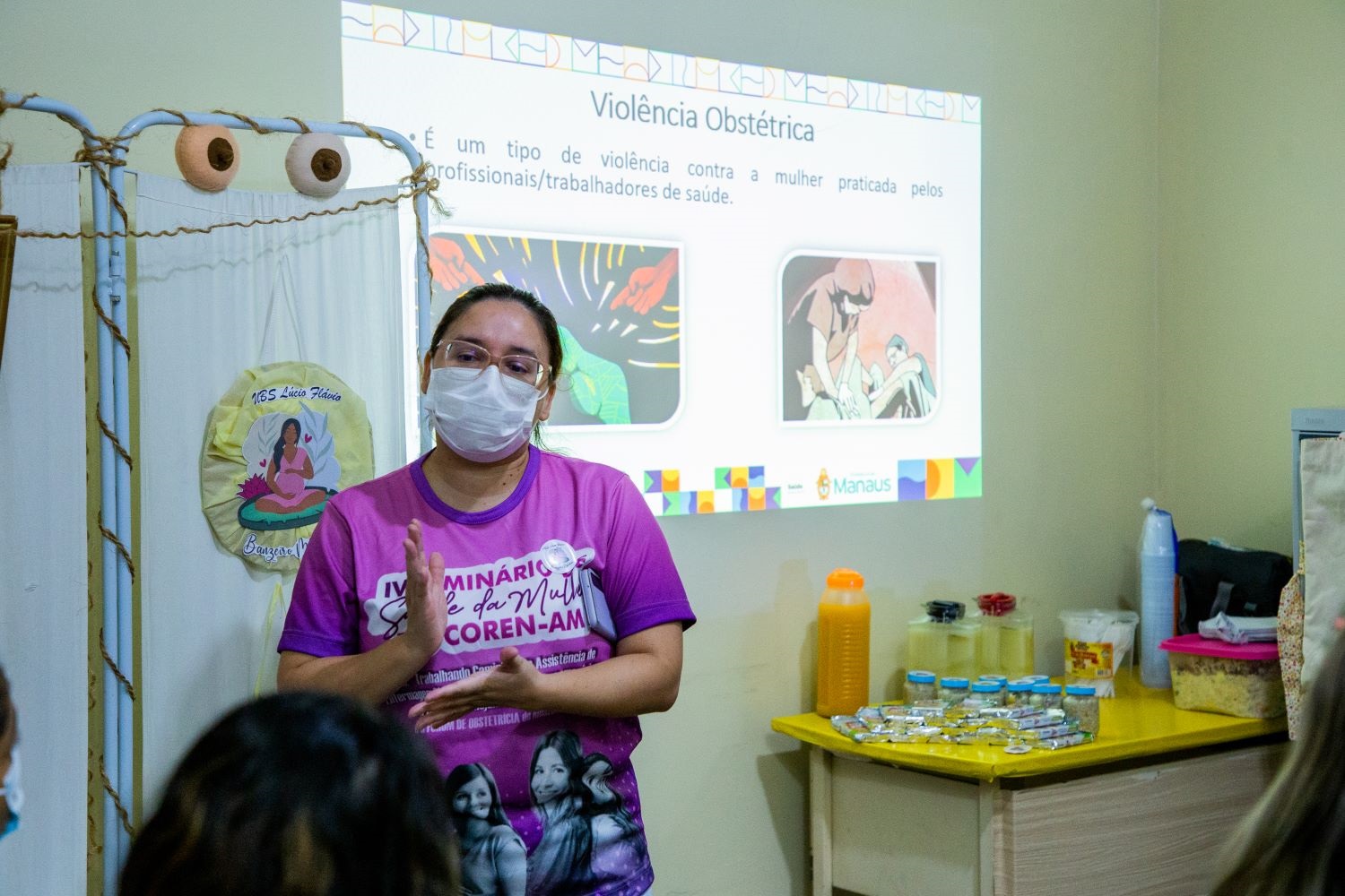 A palestra desta segunda-feira foi conduzida pela enfermeira obstetra Anne Caroline Azuma, integrante da Comissão de Saúde da Mulher do Conselho Regional de Enfermagem do Amazonas (Coren/AM), que falou sobre a violência obstétrica e suas formas. Wildys Azevedo ressalta a importância de reforço da temática para que as gestantes possam distinguir entre posturas e condutas consideradas adequadas ou não no atendimento de saúde.