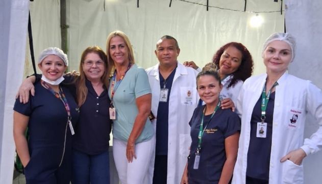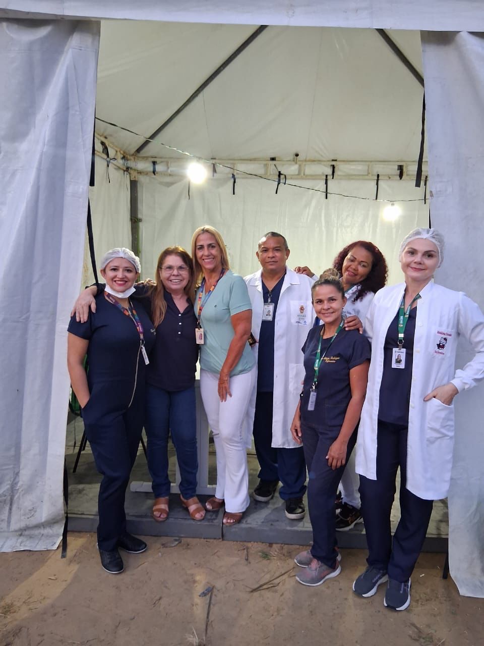 Equipe de profissionais da Semsa em base de atendimento médico em evento pelos 356 anos de Manaus