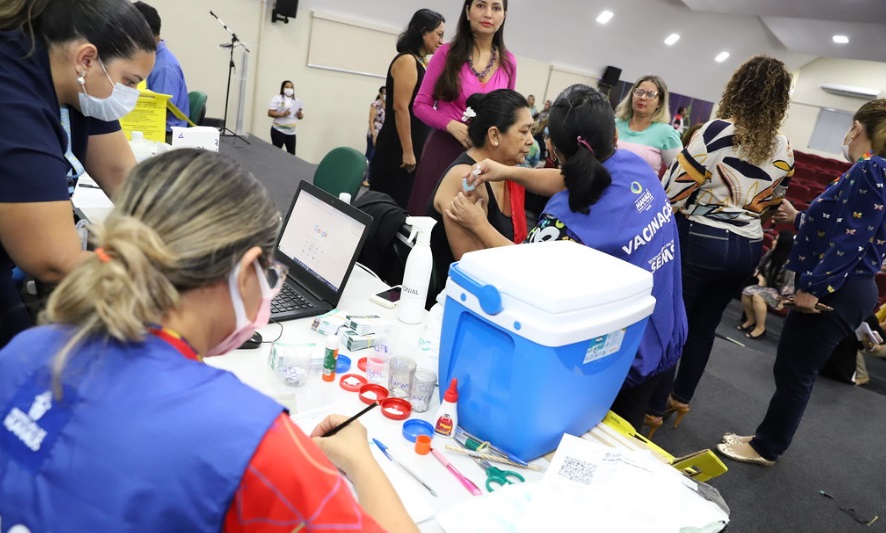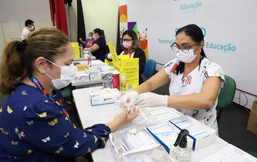 Como forma de priorizar a saúde do servidor, a Prefeitura de Manaus, por meio da Secretaria Municipal de Educação (Semed), em alusão à campanha “Fevereiro Roxo”, realizou na terça-feira, 14/2, em tempo integral, uma ação destinada aos servidores da secretaria, extensivos também para os familiares, com testes rápidos e imunização. A programação foi no auditório Luiz Geraldo Pontes Teixeira, na sede da Semed, no bairro Parque 10 de Novembro, zona Centro-Sul, em parceria com os profissionais da Secretaria Municipal de Saúde (Semsa).