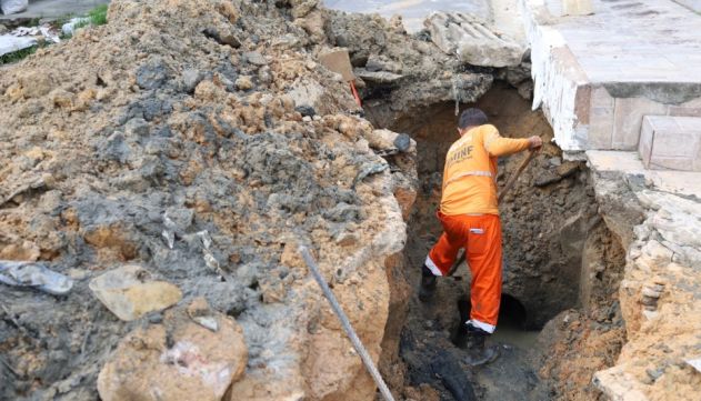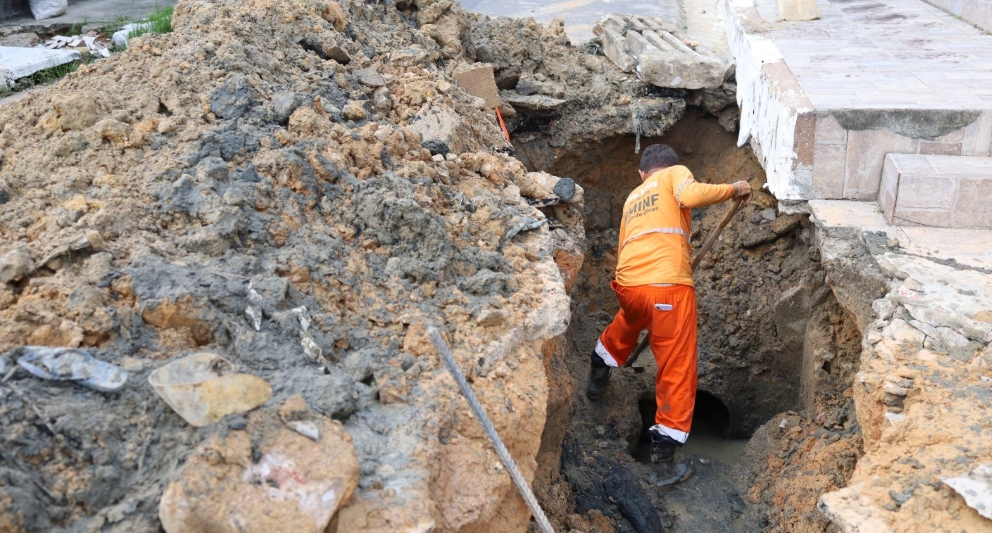 No local, a caixa coletora ficou deteriorada, desencadeando o desgaste da galeria subterrânea e causando o rompimento da mesma. Com a frente de obra, as equipes reforçam a infraestrutura da área e garantem a instalação de melhores estruturas para comportar o intenso volume de água da chuva.