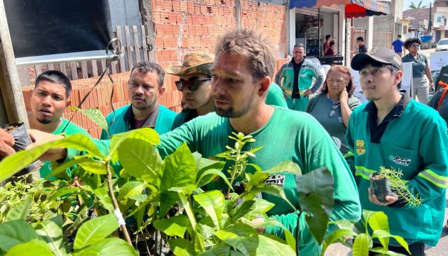 Uma das pessoas que aproveitou a distribuição itinerante de mudas foi a Alcenice Andrade de Lima, moradora do bairro Cidade de Deus, que estava a caminho de seu trabalho. Ela disse que tem mais de seis espécies de árvores frutíferas no quintal de casa. “Já temos coqueiro, pé de manga, bananeiras, pé de cupuaçu, de pitanga e até cana. Se eu pudesse, passava o dia plantando mais”, enfatizou com alegria.