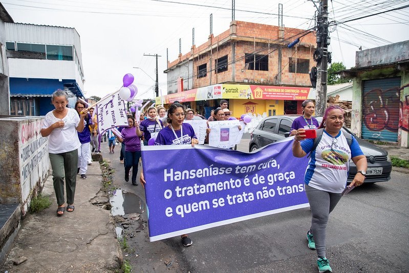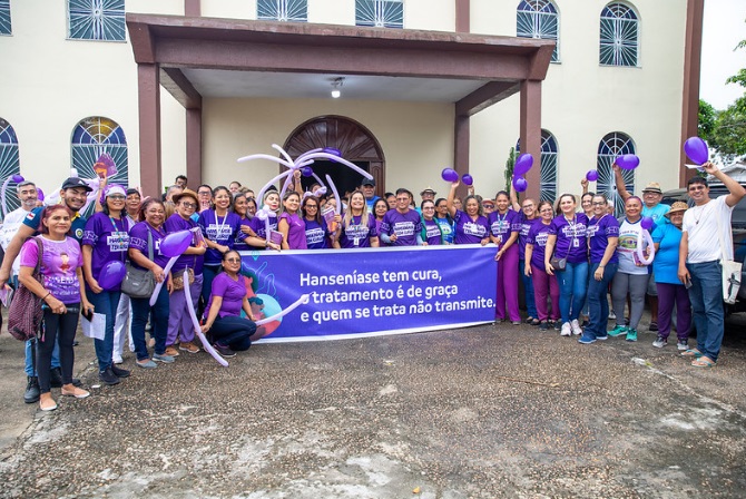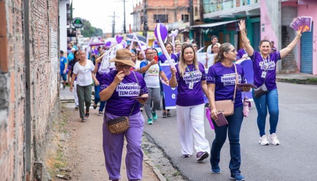 A Prefeitura de Manaus realizou, na manhã desta sexta-feira, 13/1, uma grande caminhada na Zona Leste com intuito de reforçar as ações da campanha Janeiro Roxo, que busca sensibilizar a sociedade sobre a prevenção, controle e tratamento contra a hanseníase. Coordenada pela Secretaria Municipal de Saúde (Semsa), a mobilização percorreu a avenida Mirra, do bairro Jorge Teixeira, até a Unidade de Saúde da Família (USF) Doutor José Avelino Pereira.