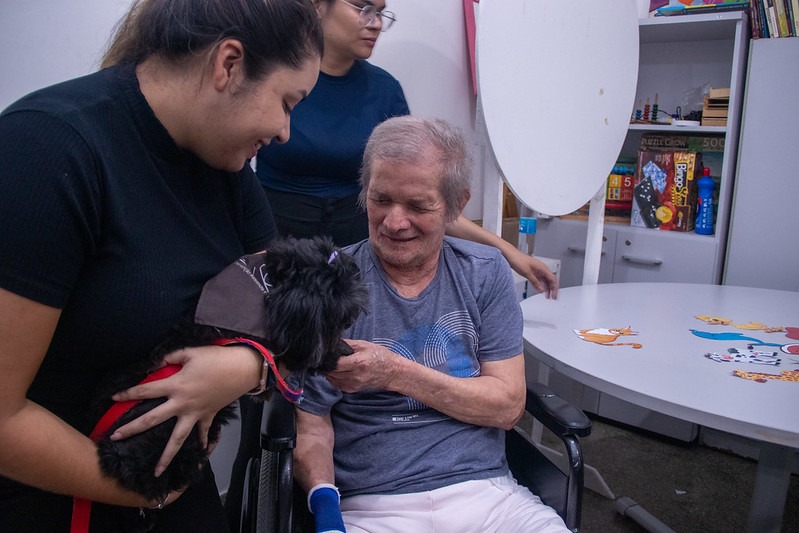 Com objetivo de oferecer estímulo cognitivo aos idosos institucionalizados, com auxílio de pets, a Prefeitura de Manaus, por meio da Fundação Doutor Thomas (FDT), realizou, na tarde de terça-feira, 12/9, o retorno do projeto “Terapia Assistida por Animais”, na sede da instituição, localizada na rua Doutor Thomas, nº 798, bairro Nossa Senhora das Graças, zona Centro-Sul.