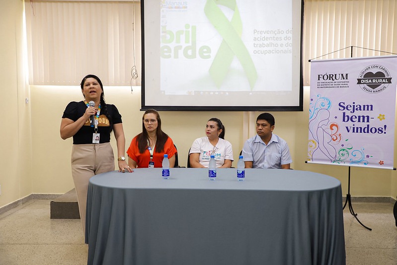 Realizada no período matutino, a programação reuniu gestores e servidores que atuam na atenção ao pré-natal e na rede materno-infantil, visando o aprimoramento na assistência de gestantes e puérperas (até 45 dias do parto) moradoras de comunidades da zona Rural de Manaus, por meio da troca de experiências e alinhamento de fluxos de atendimento nas unidades públicas de saúde.