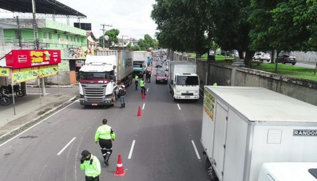 Durante operação integrada “Carga Pesada” na zona Sul da cidade, a Prefeitura de Manaus, por meio do Instituto Municipal de Mobilidade Urbana (IMMU) e com o apoio do Batalhão de Trânsito (BPTran), realizou 136 abordagens de veículos pesados, três notificações e três remoções por irregularidades.