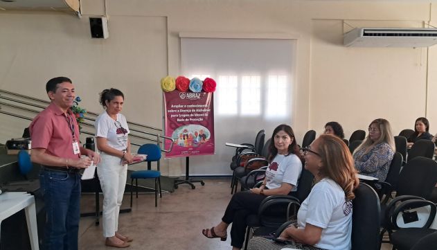 “A Abraz é uma entidade sem fins lucrativos que atende familiares e cuidadores de pacientes com Alzheimer, reunindo com grupos fixos e itinerantes nas comunidades, oferecendo apoio e informação sobre a doença em seus aspectos sociais, cuidados em saúde e aspectos previdenciários e os direitos”, informou Leidina Lima. O calendário das atividades de Educação Permanente terá continuidade na quarta-feira, 17/9, com profissionais do Disa Sul, seguindo a programação do Disa Norte, 18/9, Oeste, 19/9, e Leste, 26/9. A psicóloga Karla Lima, técnica que coordenou a atividade no Disa rural, explicou que a programação foi direcionada para as nove unidades de saúde da zona rural (terrestre e fluvial), reunindo 25 profissionais, entre médicos, fisioterapeutas, psicólogos e assistentes sociais.