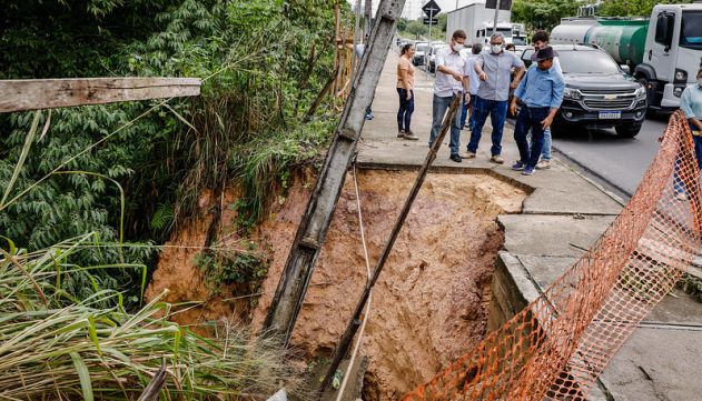 “A tubulação de drenagem foi descalçada, o que provocou uma erosão do material e rompeu as tubulações de drenagem”, explicou o subsecretário Efrain Aragão. Ainda segundo ele, a Amazonas Energia também esteve no local para fazer a mudança de posição do poste de energia, comprometido pela calçada, que cedeu com o trecho erodido da rua.