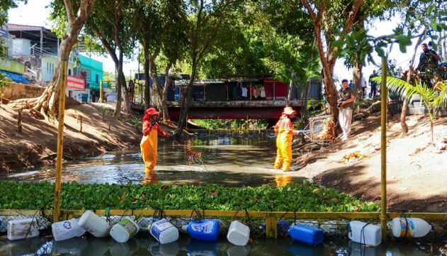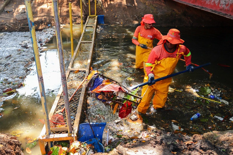 A Prefeitura de Manaus finalizou, nesta terça-feira, 30/1, a instalação de uma ecobarreira no igarapé Beira-Rio, entre as avenidas Beira-Rio e Beira-Mar, no bairro Coroado, na Zona Leste da capital. A escolha para implantação do projeto-piloto se deu em virtude de mapeamento georreferenciado das áreas com maior incidência de descarte incorreto de lixo em igarapés da cidade. A ação, coordenada pelo Conselho Municipal de Gestão Estratégica (CMGE), faz parte do programa “Anjos da Floresta”, que consiste em um conjunto de iniciativas de restauração dos ecossistemas urbanos de Manaus.