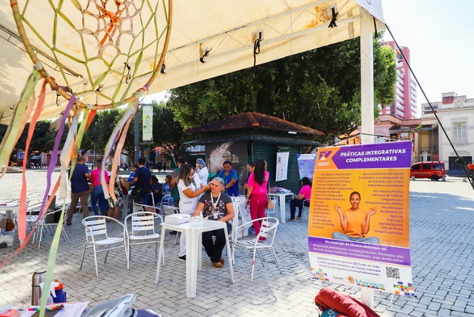 No largo São Sebastião, das 8h às 12h, as equipes da Semsa ofertaram serviços de aplicação de vacinas, aferição de pressão, testes rápidos de HIV, sífilis e hepatites, e orientações sobre planejamento reprodutivo, além de práticas integrativas complementares já implementadas no Sistema Único de Saúde (SUS) e ofertadas pela Semsa, como auriculoterapia e ioga.