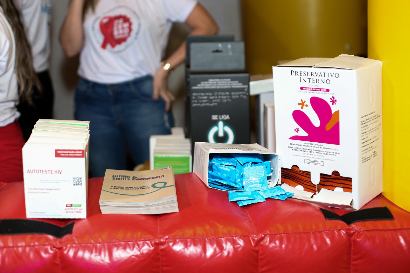 Durante a programação, haverá distribuição de autotestes de HIV, de gel lubrificante, de preservativos masculinos (externos) e femininos (internos) e de material educativo