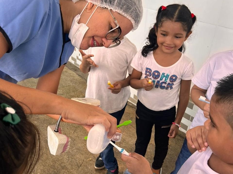 As atividades do Dia “D” nas escolas incluíram orientações de higiene oral, escovação supervisionada, exames, distribuição de kits de saúde bucal e procedimentos de restauração atraumática, técnica pouco invasiva para prevenção e controle de cáries, que dispensa o uso de brocas e outros equipamentos odontológicos. O objetivo é sensibilizar alunos, educadores e comunitários para a promoção de cuidados e hábitos saudáveis, como a boa escovação e o uso correto do fio dental.