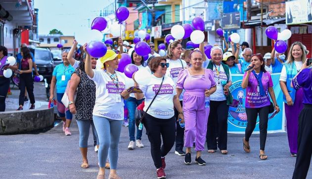 Como parte da programação do Janeiro Roxo, campanha de prevenção e controle da hanseníase, a Unidade Básica de Saúde (UBS) Avelino Pereira, da Prefeitura de Manaus, promoveu, na manhã desta sexta-feira, 12/1, uma caminhada de sensibilização no bairro Jorge Teixeira, Zona Leste de Manaus. A programação reuniu profissionais de saúde, moradores e representantes de grupos de idosos, que saíram em caminhada da igreja Santa Clara e percorreram as ruas do bairro com distribuição de material educativo, encerrando com palestras na UBS Avelino Pereira.