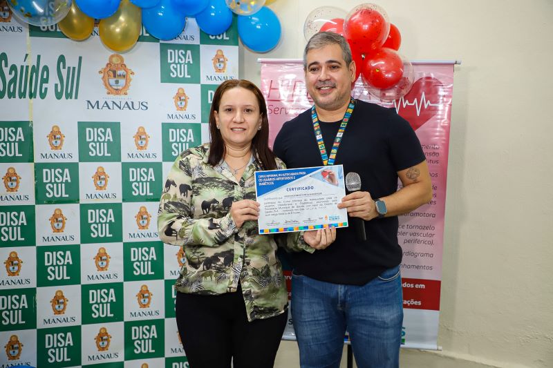 A Prefeitura de Manaus concluiu, na sexta-feira, 15/3, mais uma turma do curso informal “Autocuidado para hipertensos e diabéticos”, coordenado pela Secretaria Municipal de Saúde (Semsa). A formação, que integra as ações da pasta para promover o bem-estar e a qualidade de vida de pessoas com condições crônicas, foi realizada ao longo de duas manhãs, iniciando na quinta-feira, 14, na sede do Distrito de Saúde (Disa) Sul, no bairro Adrianópolis.