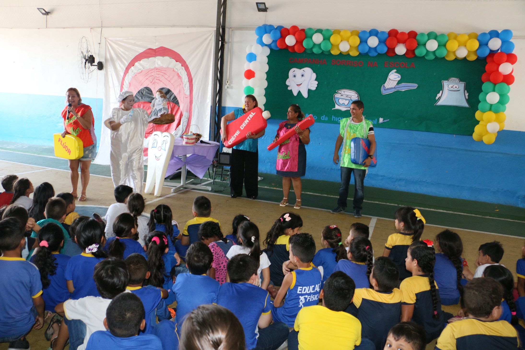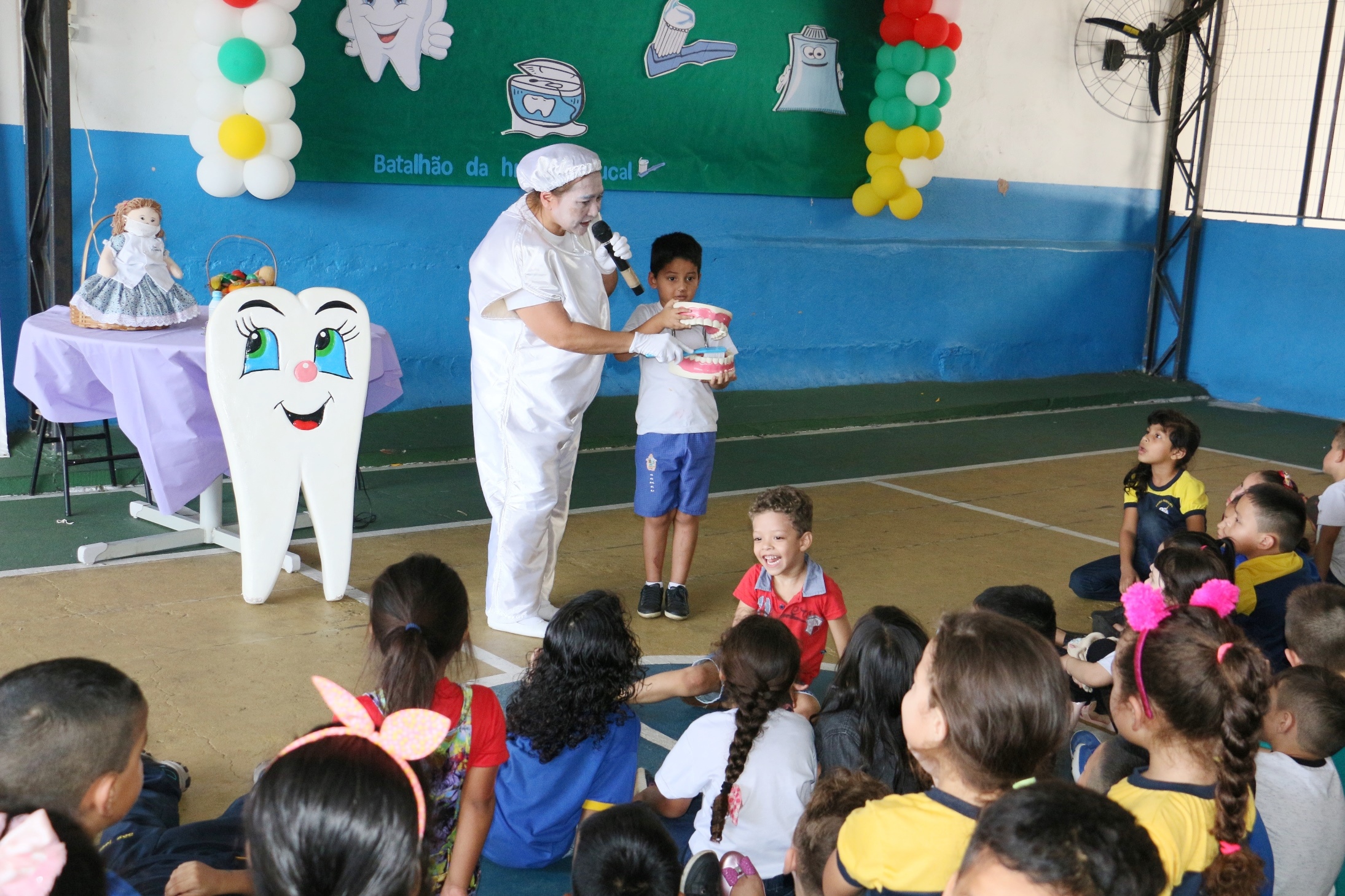 Durante o evento, também houve a parte prática do conteúdo, em que a palestrante explicou quais os procedimentos adequados em relação ao modo de escovar os dentes, tendo como apoio instrumentos lúdicos, que foram confeccionados pela própria dentista com materiais reciclados, que funcionarão como recursos educacionais a fim de possibilitar a melhor compreensão dos alunos acerca da temática nos encontros do programa.