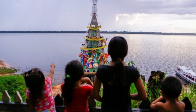 Presépio flutuante com trenó do Papai Noel vai percorrer 38 comunidades ribeirinhas. CONFIRA