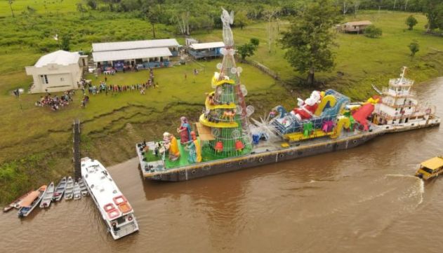 Presépio flutuante com trenó do Papai Noel vai percorrer 38 comunidades ribeirinhas. CONFIRA