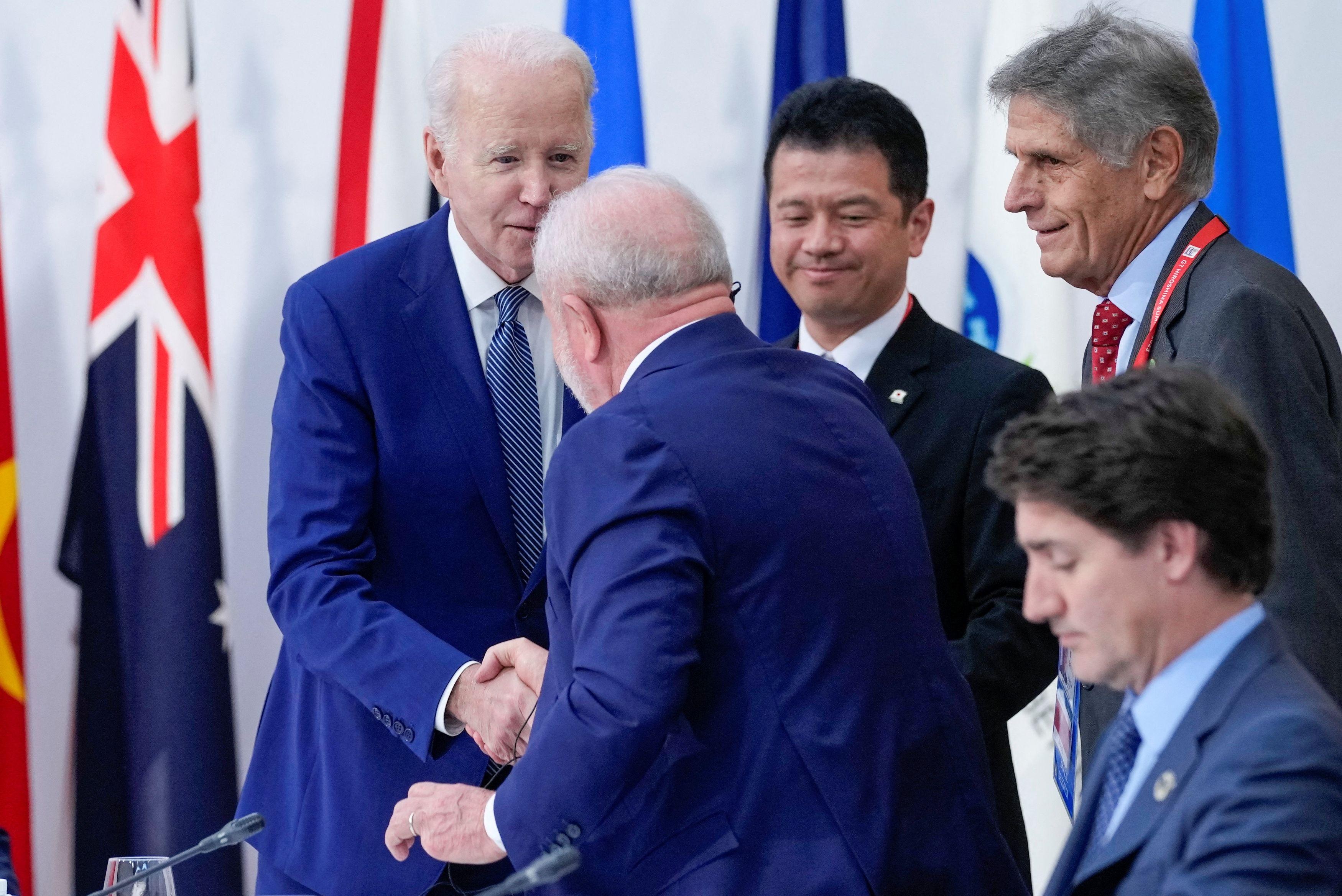 Na sessão "Trabalhando Juntos para Enfrentar Múltiplas Crises", em que se sentou entre o presidente dos Estados Unidos, Joe Biden, e o primeiro-ministro do Canadá, Justin Trudeau, Lula lembrou sua participação no G-7 de 2009, após a crise financeira global, que levou posteriormente à criação do G-20.