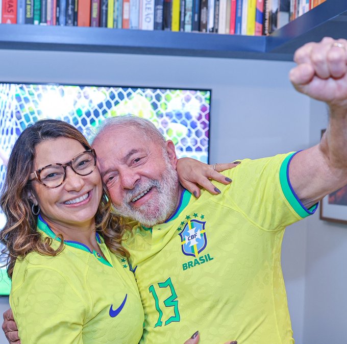 O presidente eleito Luiz Inácio Lula da Silva (PT) publicou uma foto nas redes sociais ao lado da esposa Rosângela da Silva, a Janja , vestindo a camisa da seleção brasileira. O petista parabenizou a vitória do Brasil contra a Sérvia na Copa do Mundo.