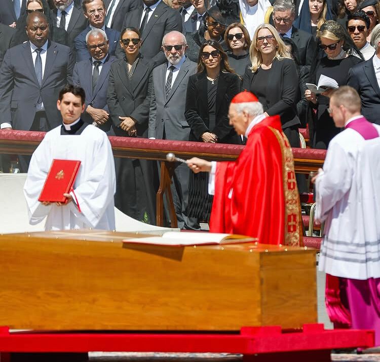 O presidente Luiz Inácio Lula da Silva participou neste sábado, 26/4, da despedida ao Papa Francisco. Lula compareceu ao funeral do Santo Padre na Praça São Pedro, em Roma, na Itália. No local, foi celebrada a Missa Exequial que antecedeu o sepultamento. Segundo o Vaticano, ao menos 130 delegações estrangeiras, incluindo 50 chefes de estado e 10 monarcas, confirmaram presença na cerimônia.