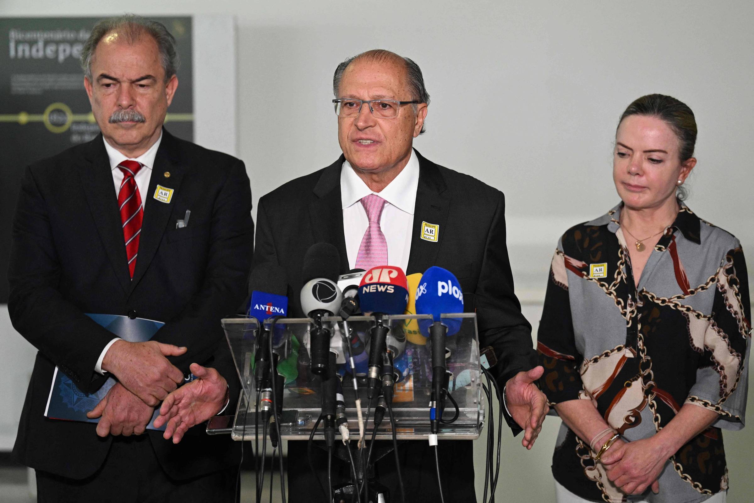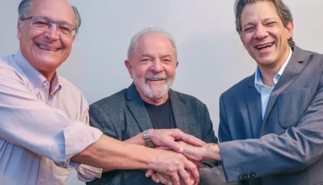 Presidente Luiz Inácio Lula da Silva entre Geraldo Alckmin, vice-presidente e Fernando Haddad., que foi candidato ao governo do Estado de São Paulo