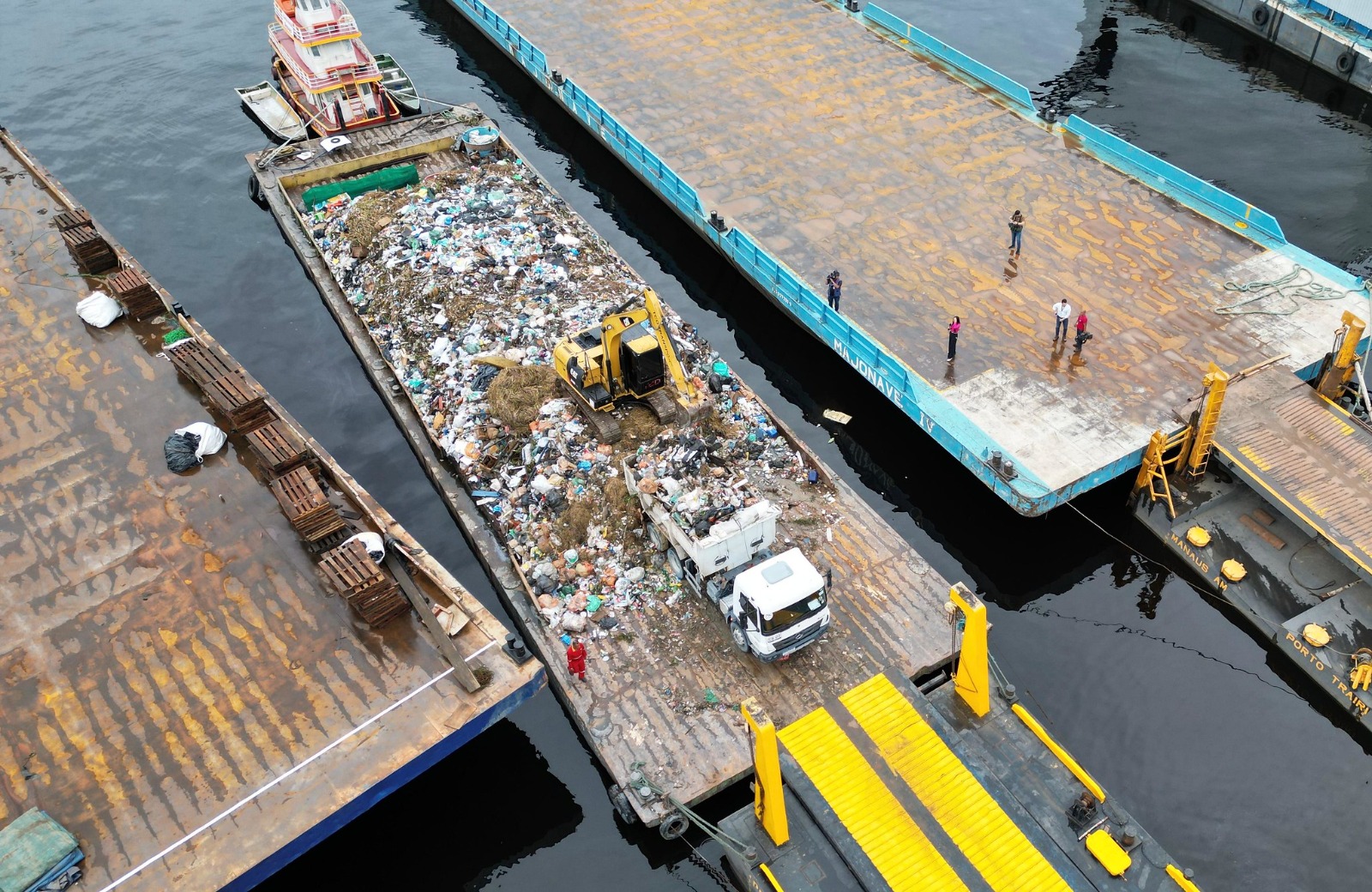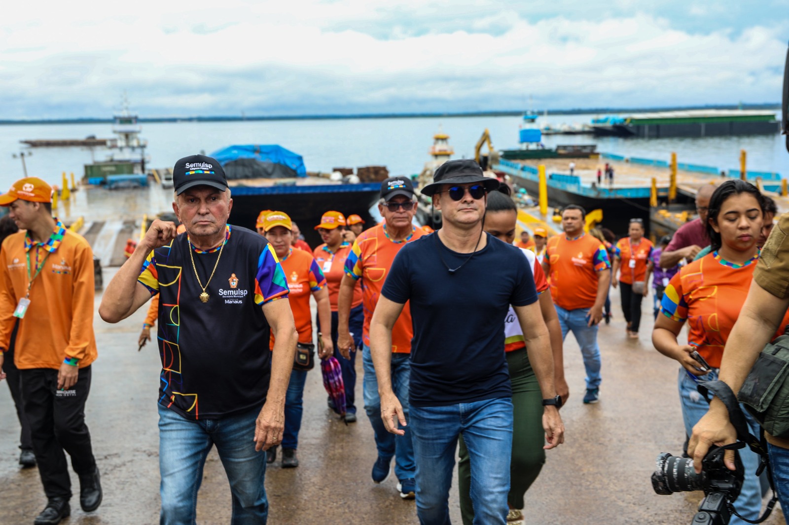 Na manhã deste domingo, 19/5, a Prefeitura de Manaus, por meio da Secretaria Municipal de Limpeza Urbana (Semulsp), realizou o serviço de transbordo de resíduos retirados dos rios e igarapés nos últimos 30 dias na capital. A atividade foi inspecionada pelo prefeito David Almeida e o secretário Sabá Reis, titular da Semulsp.