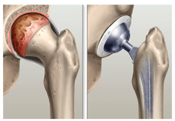 O médico chega à articulação comprometida, prepara o local removendo os tecidos doentes e os substitui por uma prótese.