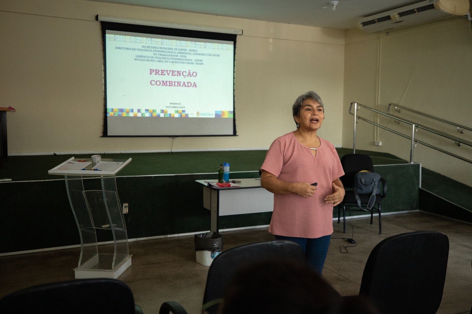 Durante a segunda turma da capacitação, que aconteceu nesta quinta-feira, 19/10, no auditório do Complexo de Saúde Oeste, bairro da Paz, a médica Aline Alencar, que atuou na orientação dos profissionais, explicou que a capacitação aborda a importância da qualidade do acolhimento dos usuários do SUS que procuram o serviço, as medicações utilizadas e as populações indicadas para fazer o uso da profilaxia.