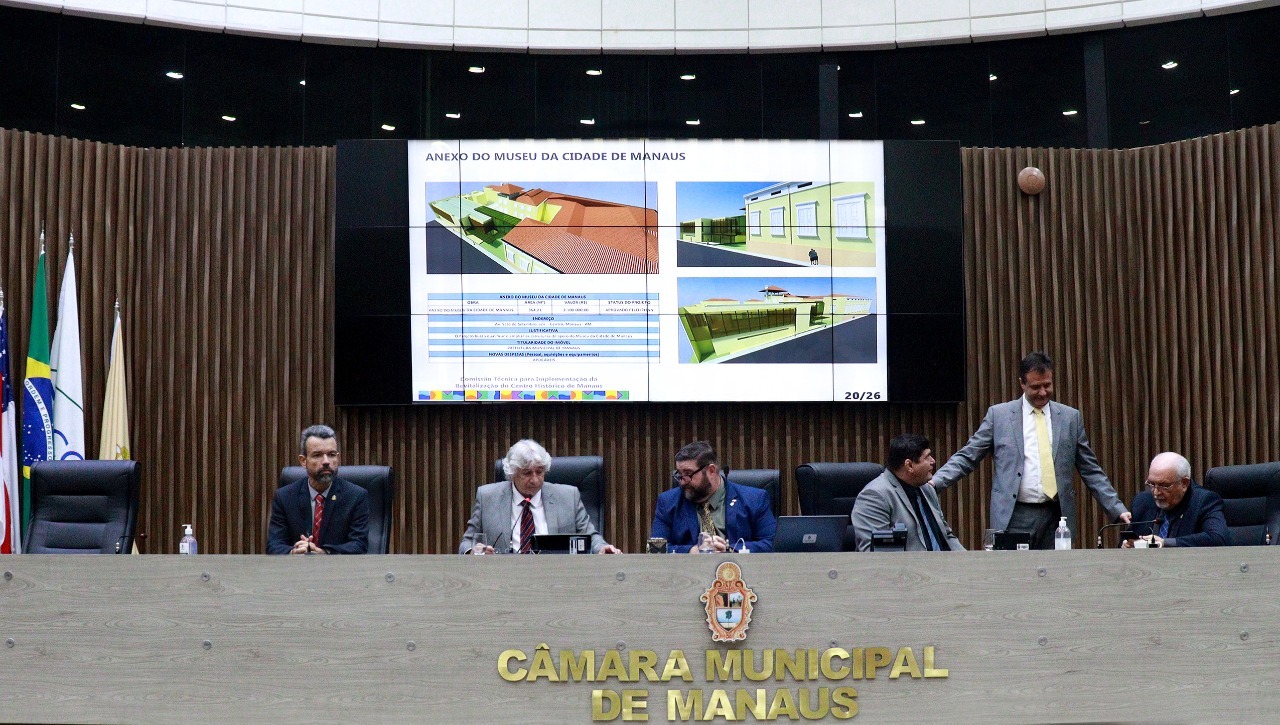Durante a sessão plenária da Câmara Municipal de Manaus (CMM) desta quarta-feira, 29/6, a Prefeitura de Manaus, via Instituto Municipal de Planejamento Urbano (Implurb), fez apresentação aos vereadores do programa “Nosso Centro”, lançado pela gestão do prefeito David Almeida em 2021.