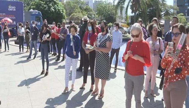 Funcionários da Caixa fazem protesto contra Pedro Guimarães na sede do banco, em Brasília