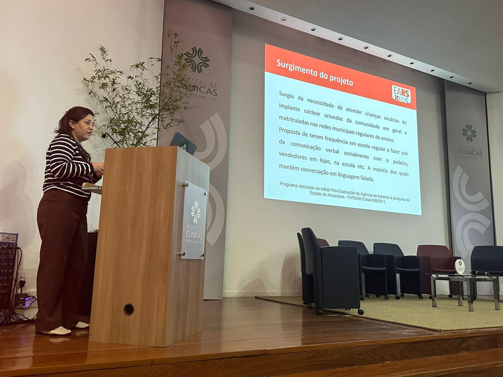 A Prefeitura de Manaus, por meio da Secretaria Municipal de Educação (Semed), participou, de 3 a 6/9, do congresso internacional EARS Kids 2025, que aconteceu no Hospital de Clínicas de Porto Alegre, em Porto Alegre (RS). Representando a rede municipal de ensino, a professora Mariana Pedrett apresentou o Programa de Reabilitação Auditiva para Crianças Usuárias de Implante Coclear (PIC), voltado ao atendimento especializado de crianças com deficiência auditiva matriculadas na Semed.