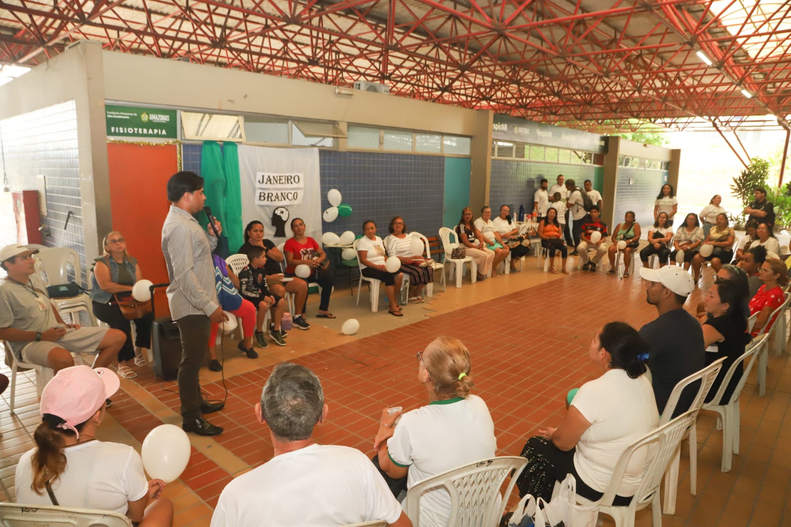 O Programa RespirAR, coordenado pela Secretaria de Estado do Desporto e Lazer (Sedel), realizou nesta sexta-feira, 05/01, uma palestra sobre saúde mental, tema da campanha do Janeiro Branco. O evento ocorreu no Centro Estadual de Convivência da Família Padre Pedro Vignola, no bairro Cidade Nova, e contou com a presença de profissionais e pacientes do RespirAR.