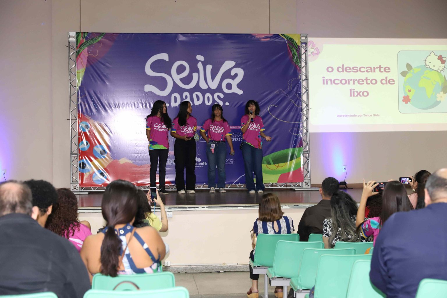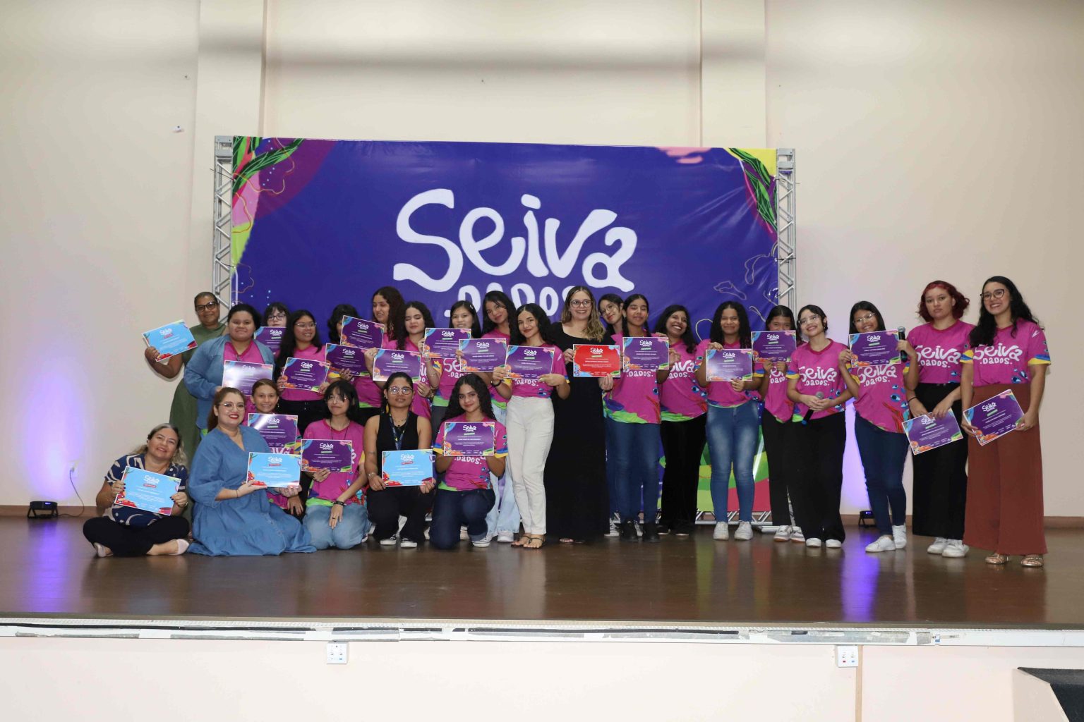 A Secretaria de Estado de Educação e Desporto Escolar encerrou nesta quarta-feira, 03/12, ciclo do projeto Seiva.Dados, reunindo mais de mil alunos de Ensino Médio participantes da ação, além de representantes das instituições parceiras, como o Fundo das Nações Unidas para a Infância (Unicef), o Instituto de Ciências Periféricas (ICP) e a Universidade Federal do Amazonas (Ufam). Durante o evento, alunas de todos os grupos apresentaram ao público os projetos desenvolvidos ao longo dos últimos cinco meses nas Escolas Estaduais (EE) Manoel Rodrigues de Souza, EE Roberto dos Santos Vieira, EE Ruy Alencar, EE Nathalia Uchoa e EE Jairo da Silva Rocha.