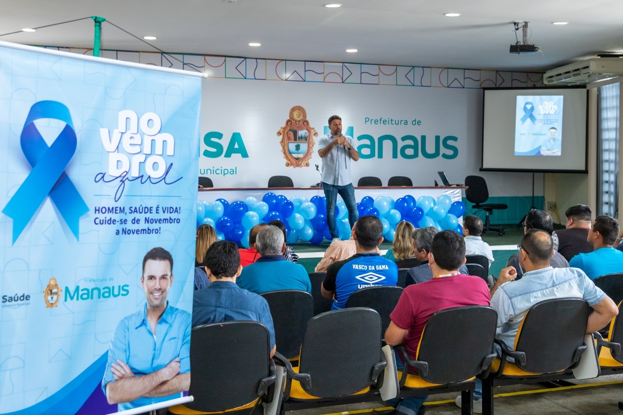 As ações da campanha Novembro Azul, promovidas pela Prefeitura de Manaus, também estão alcançando os próprios servidores da rede municipal de saúde, com intuito de estimulá-los a buscar serviços de prevenção com mais frequência. Na sexta-feira, 11/11, os trabalhadores da sede da Secretaria Municipal de Saúde (Semsa) participaram de palestras referentes à saúde do homem, no auditório Dr. Deodato Miranda Leão, na sede da secretaria, bairro Adrianópolis, zona Centro-Sul.
