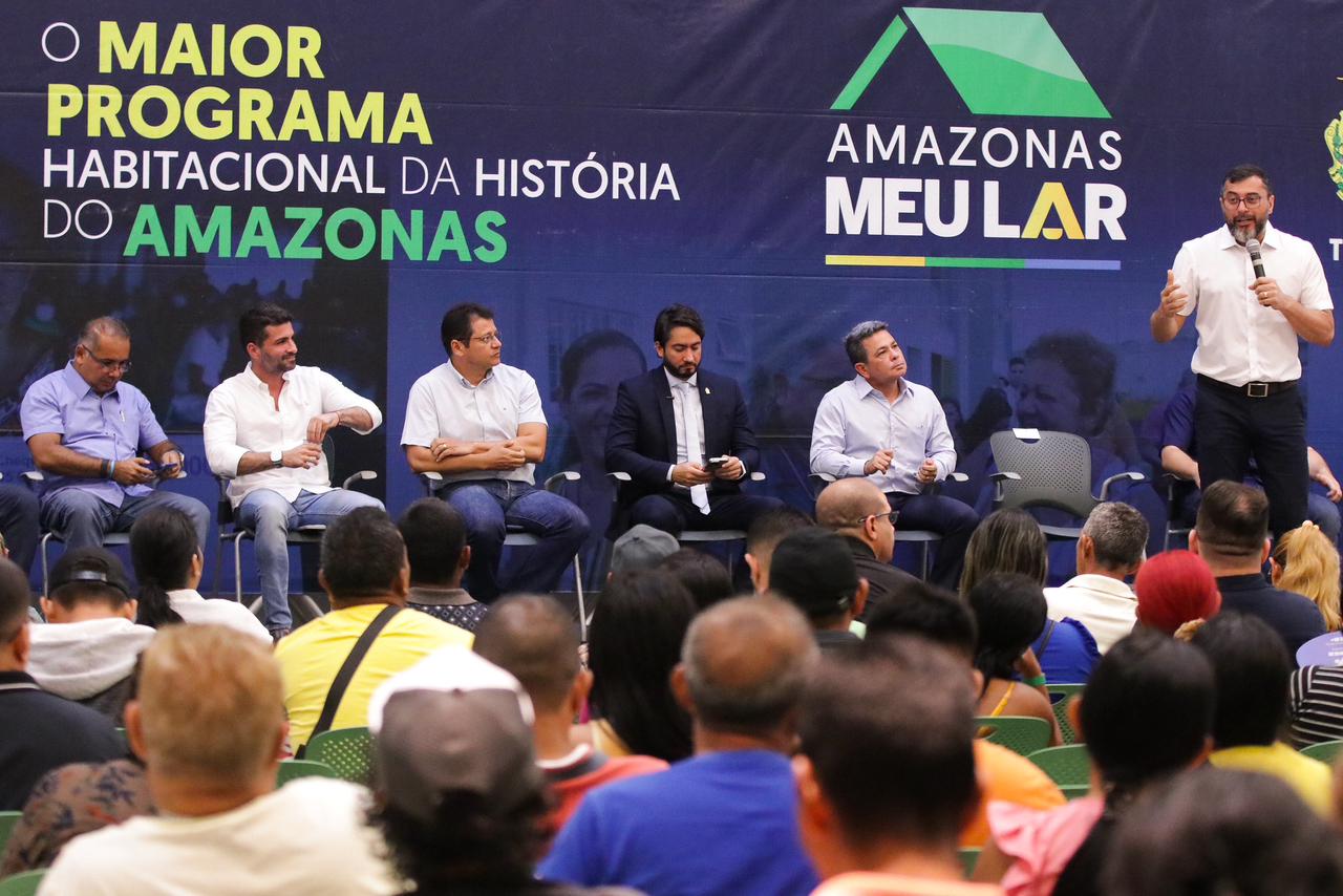 Lançado em 2023 pelo governo Wilson Lima e estimado em R$ 4,7 bilhões, o programa Amazonas Meu Lar prevê 24 mil soluções definitivas de moradia para a população de baixa renda, sendo 22 mil novas unidades habitacionais e a regularização de 33 mil imóveis.