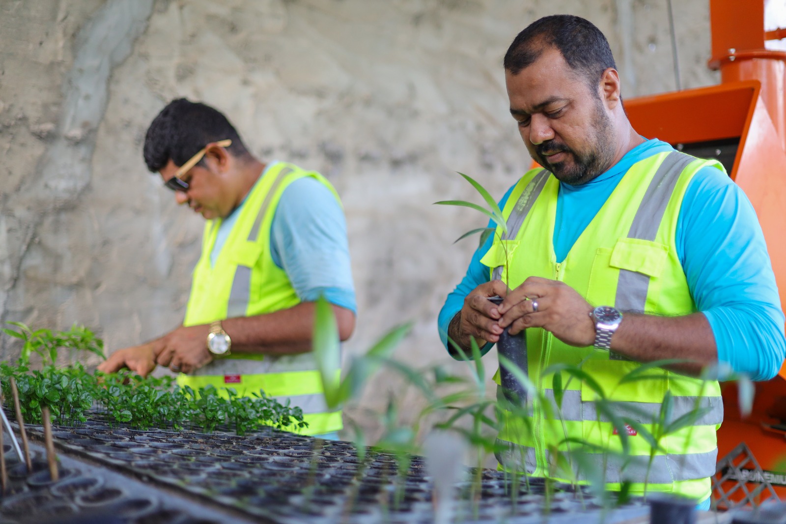 A nova etapa do Prosamin+ está priorizando o reflorestamento de áreas degradadas e a ampliação do espaço verde. Serão pelo menos 111 mil metros quadrados de área reflorestada e de paisagismo, utilizando espécies nativas da região.