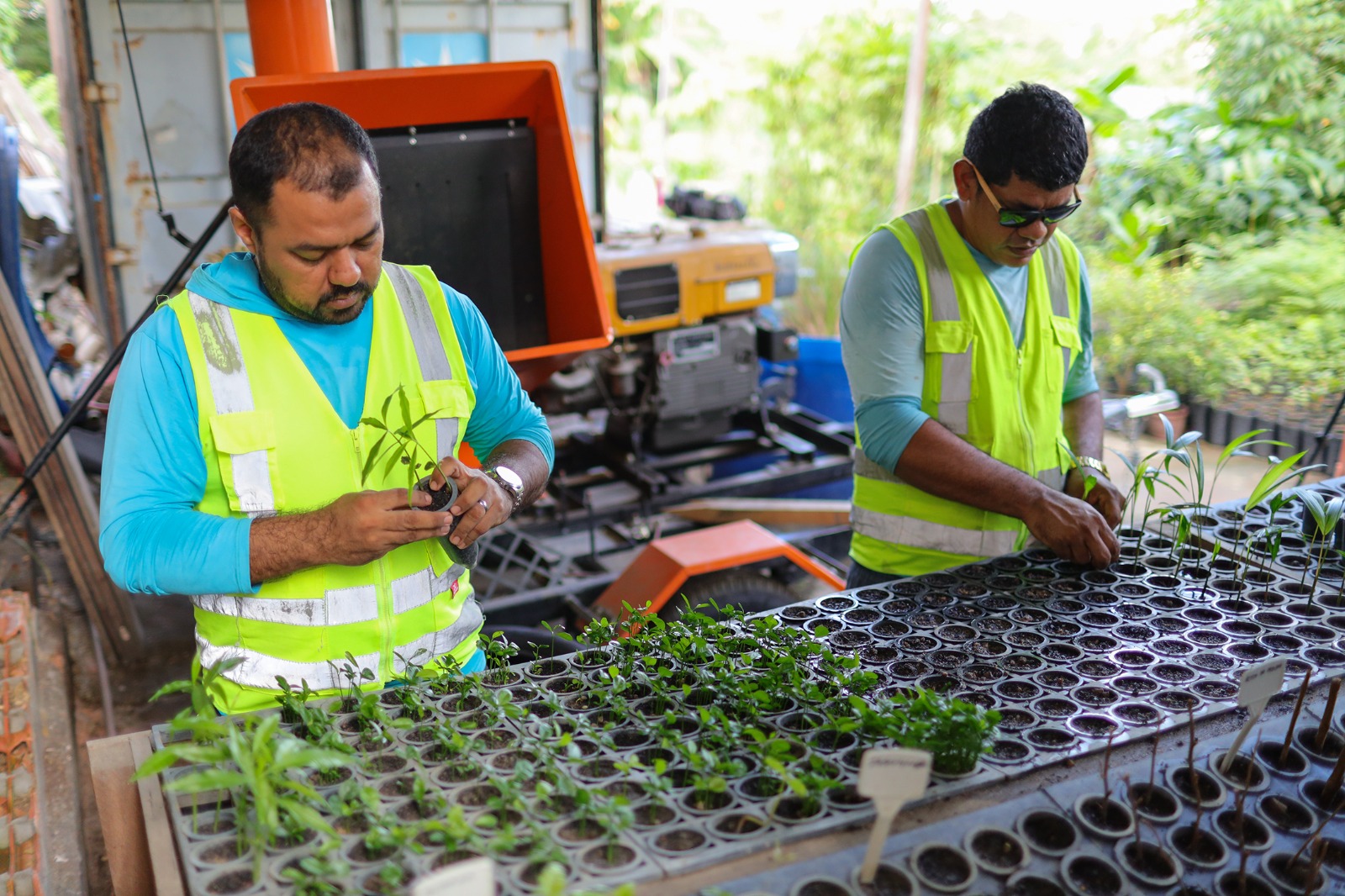 Para isso, foi criado o viveiro de mudas, uma iniciativa inédita em obras públicas no Amazonas. O local já produziu mais de 10 mil mudas. No canteiro de obras da Comunidade da Sharp, na zona leste, são cultivadas mais de 30 espécies que serão usadas no reflorestamento de áreas do Prosamin+, como buritizeiro, bacabeira, sumaúma, seringueira, açaizeiro, ingazeira, pau pretinho, entre outras. A estimativa é que 50 mil mudas sejam produzidas para as ações de recomposicão vegetal do projeto.