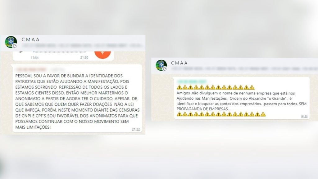 Ao que tudo indica, existem outras empresas envolvidas em doações e no financiamento das manifestações antidemocráticas em Manaus. Mensagens compartilhadas nos grupos de WhatsApp por pessoas que parecem estar na organização dos atos indicam a existência de outros doadores. Membros do grupo de conversa pedem para não serem mais compartilhados vídeos e fotos das empresas e materiais recebidos.