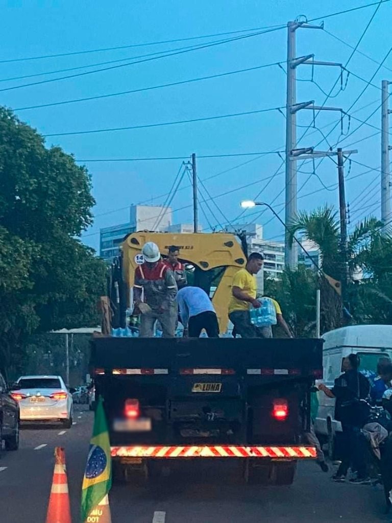 A reportagem também teve acesso a um vídeo que mostra outra doação de fardos de água, desta vez da empresa Tuboaços da Amazônia. Nas imagens, o narrador, membro do ato antidemocrático, declara ser “mais uma doação da Tuboaços“. O manifestante pede para divulgarem o vídeo. “Compartilha aí, que a Tuboaços é nossa amiga“.