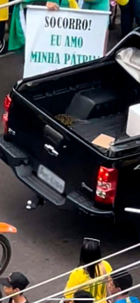 A REVISTA CENARIUM flagrou na tarde de quinta-feira, 17, a entrega de uma das doações ao ato extremista em frente ao CMA. Um carro modelo Chevrolet S10 abastece os manifestantes com água e refrigerante. A reportagem investigou os dados da placa do veículo e conseguiu identificar que o dono é um empresário do ramo de varejo.