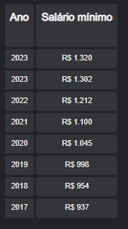 Tabela do salário mínimo
