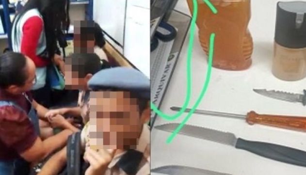 Mães dos alunos foram chamados ás pressas no colégio após serem encontradas as armas nas bolsas dos filhos