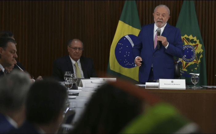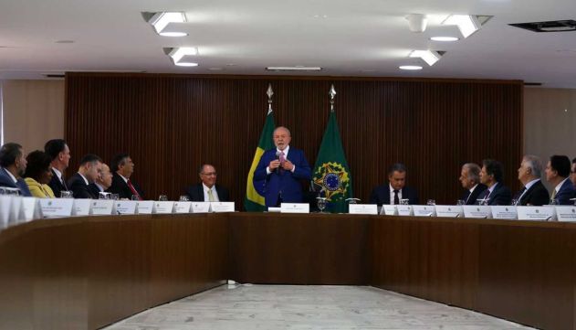Presidente Luiz Inácio Lula da Silva coordena a primeira reunião ministerial.