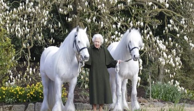 A rainha Elizabeth II comemora nesta quinta-feira (21) seu 96º aniversário, e marcou a data com a divulgação de uma foto que a mostra com dois de seus pôneis.