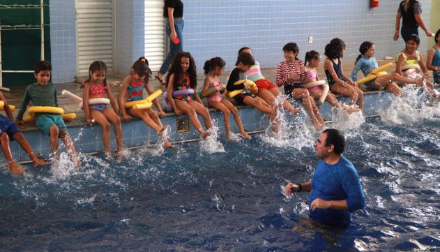 A piscina interna do Centro Estadual de Convivência da Família Magdalena Arce Daou foi o cenário escolhido, nesta quarta-feira (17/01), para crianças de 5 a 12 anos, inscritas na Colônia de Férias, participarem de atividades recreativas e aquáticas. A programação de férias no centro voltada às crianças da comunidade, iniciou na segunda-feira (15/01) e se estende até quinta-feira(18/01).