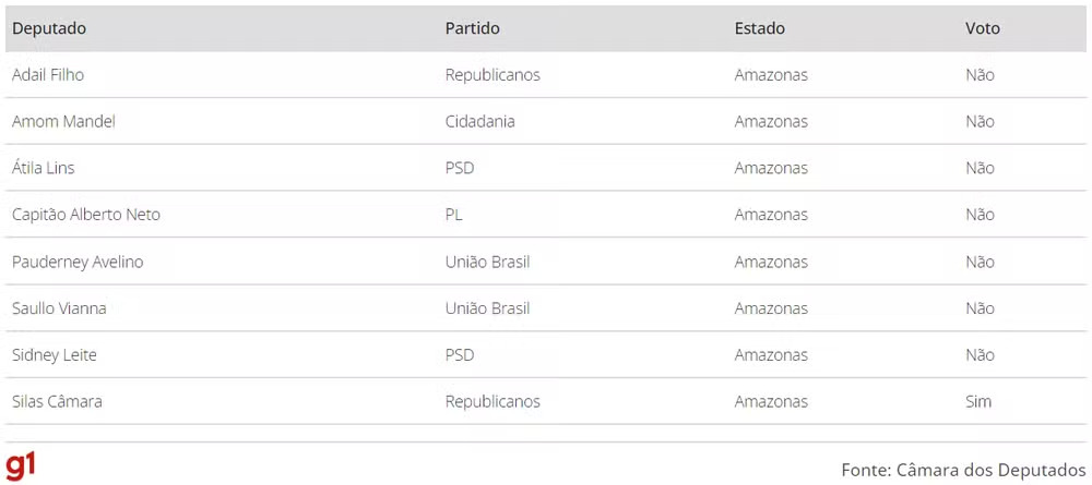 Veja como votou cada deputado do Amazonas (Foto: Reprodução/g1)