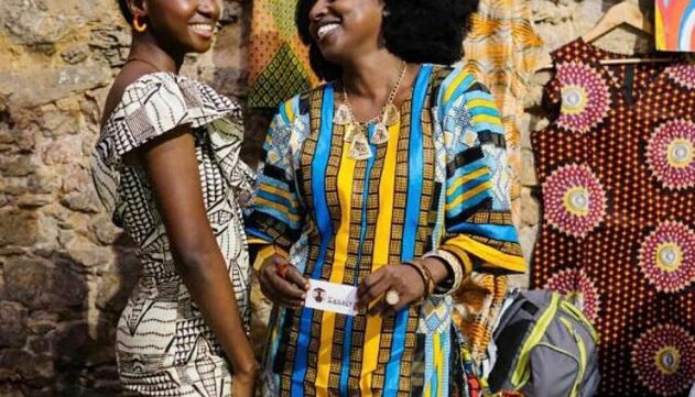 Maimuna Jawo e Mariama Bah em uma feira de expositores no Rio de Janeiro