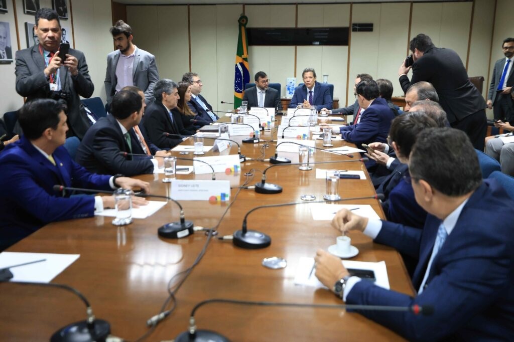 O governador Wilson Lima esteve em reunião em Brasília, nesta quarta-feira (05/07), acompanhado da bancada federal do Amazonas, e apresentou ao ministro da Fazenda, Fernando Haddad, uma proposta para o texto da reforma tributária que dá segurança jurídica, mantém a competitividade da ZFM e prevê a criação de um fundo para compensar perdas de arrecadação para o Estado.