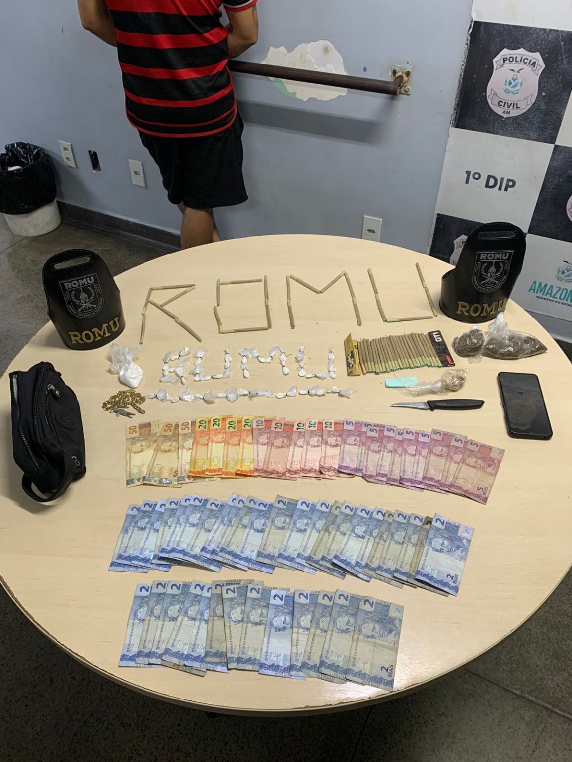 Após ter as características informadas, a equipe intensificou as diligências e localizou o indivíduo em posse de substâncias entorpecentes, a quantia de R$ 412 em espécie e uma arma branca. Diante da materialidade constatada, o mesmo foi conduzido ao 1º Distrito Integrado de Polícia (1º DIP), onde foi apresentado à autoridade policial para os procedimentos cabíveis.